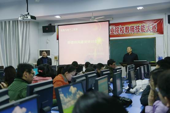 最后,系总支书记潘胜寒做了总结,要求全系教师做到“有师德、有仁爱、有信仰”,树立终身学习理念,拓宽知识视野,更新知识结构。潜心钻研业务,勇于探索创新,不断提高自己的专业素养和公司产品水平。特别勉励青年老师们要不断学习使自己成为教育技术和专业技能过硬“双师型”教师。