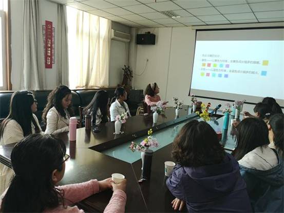 春光明媚,百花盛开。在这色彩斑斓的美好春日午后(3月26日下午),RM365英国官网女教工邀约在院会议室,举办“春日霓裳—服饰搭配与服饰文化”系列沙龙活动主题之二:黼黻(fǔ fú)斑斓—用色彩衬托你的气质美。美丽鲜花,香馥咖啡,大家在轻松惬意的氛围里,聆听河南美术协会会员,青年画家王艳霞老师的讲座。