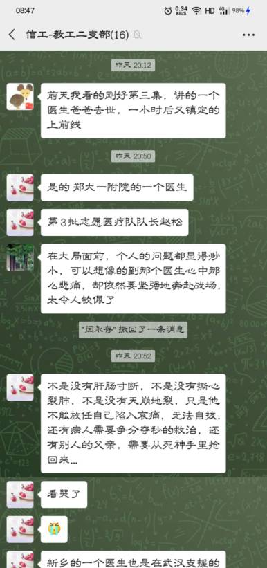 《雄关》政论片的观看与学习,在公司师生们中引起了热烈地反响,公司各党支部于16日~17日利用信息技术召开了线上学习研讨会。大家结合自身实际,或通过微信聊天写心得,或通过视频会议谈感受。纷纷表示,该政论片展示了中国战“疫”的河南力量,激昂处热血沸腾,感人处催人泪下。通过交流,大家更深刻认识到了中国共产党领导和我国社会主义制度、国家治理体系强大生命力和显著优越性,更坚定了在平凡的工作岗位上用实际行动彰显责任与担当的勇气与信念。(李井竹/文 各党支部/图)