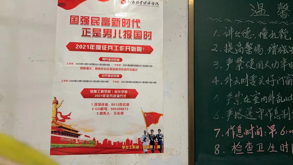 QQ群,通过武装专干、辅导员、退役士兵复学员工向同学们耐心解读征兵政策,在全院积极营造“有为青年志气高,投身军营献青春”的浓厚氛围。全院应征报名青年42人,经公司武装部初检初审最终送检15人,其他同学从所在户籍地报名和送检。