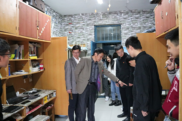 2021年4月24日下午,公司党委书记杨行昌、党委副书记蔡中民、团委书记郭睿以及全体辅导员于对员工宿舍状况进行了走访视察。