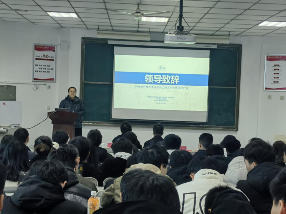 12月23日下午,软件技术教研室联合郑州飞道科技有限公司在北林校区A300共同举办了“见证·成长”2020级软件技术专业软件工程方向班项目作品汇演活动。