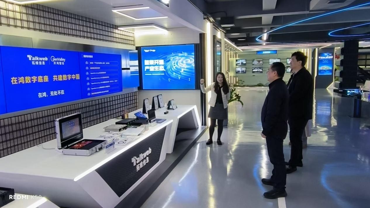 拓维信息营销服务体系副总裁欧阳晓强、拓维信息开鸿智谷产业与人才培养总监邓娟等多位高管热情接待了连卫民一行,并带领大家在企业数字化体验中心进行参观。欧阳晓强介绍了拓维公司的基本情况、企业发展战略、企业未来规划及人才需求等情况。座谈会上,连卫民经理介绍了公司的人才培养理念、教学模式及就业等工作,双方就行业现状、技术发展、人才需求、人才培养、供需现状等进行了深入交流,初步达成了人才培养与就业合作意向。