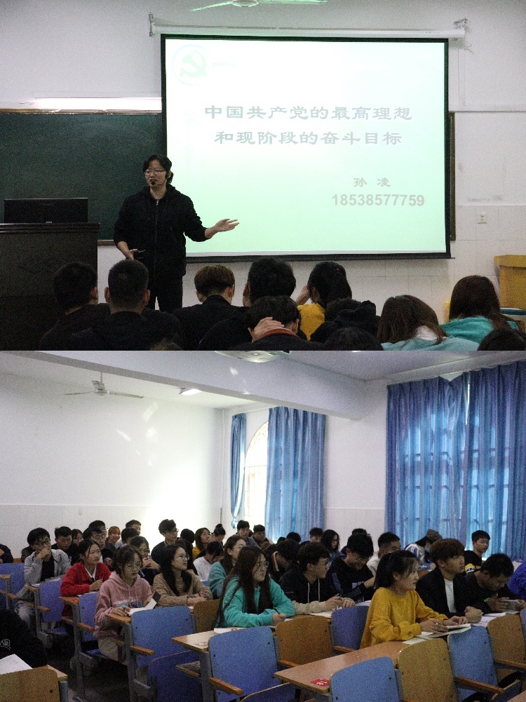 党课开始,孙凌老师首先带领大家学习了《中国共产党章程》总纲,为同学们深刻诠释了实现共产主义对中华民族的历史作用。她讲道,实现共产主义,必须具备社会主义社会充分发展和高度发达的基础,这就需要我们党经过长时期、分阶段的艰苦努力,完成每个阶段的具体目标,充分发挥社会主义的先进性和优越性,争取早日实现共产主义。随后,孙老师结合自身实际,又借以中西方最崇高理想的对比,极大地表现出对共产主义社会的期盼和向往。最后孙老师表示,不管在今后的历史进程中,共产主义运动遇到任何障碍、出现什么曲折,共产主义制度在全世界最终实现的趋势是不可阻挡的。
