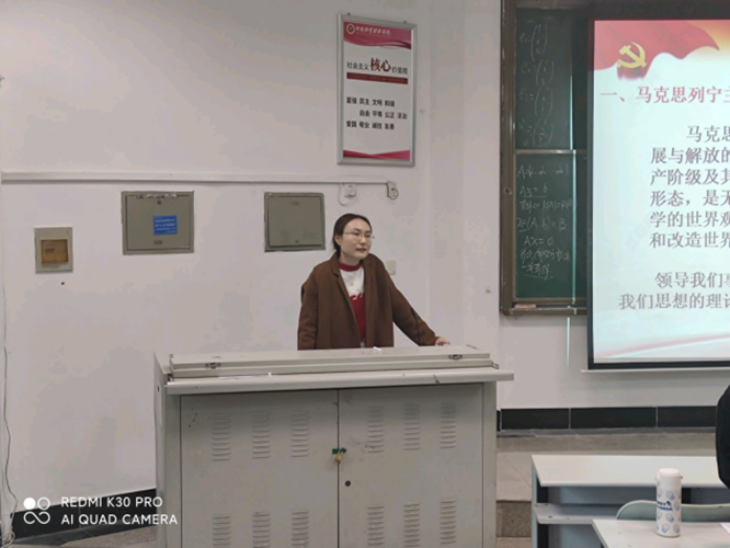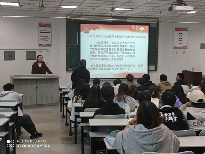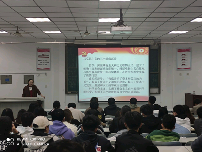 于老师以《党的指导思想》为本次党课主题,围绕马克思列宁主义、毛泽东思想、邓小平理论和三个代表重要思想、科学发展观和习近平新时代中国特色社会主义思想进行了展开。