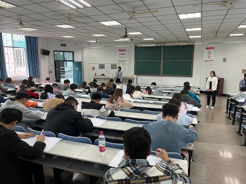 考前强调考风考纪。考试前,监考老师向大家强调了考试过程中认真考试,不能作弊,严格要求自己,希望同学们积极配合监考人员,严格遵守考场纪律,做到诚信考试。