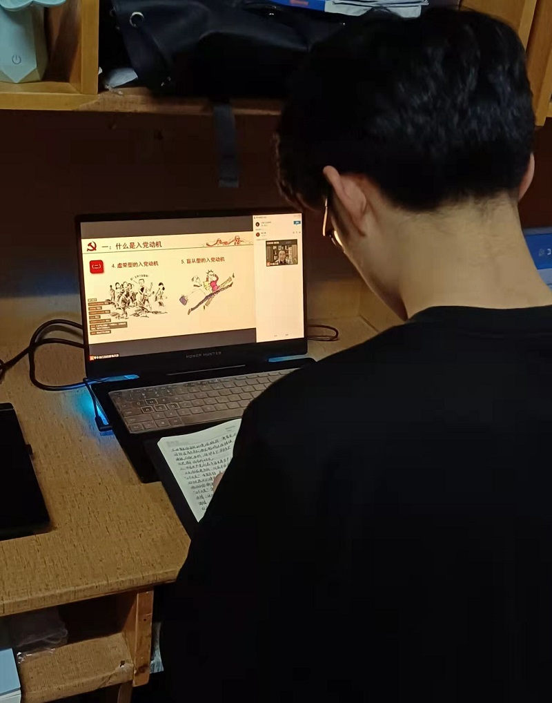 党课培训开始前,同学们便早早地进入视频会议,准备听取真知灼见,坚定内心的方向。党课培训学习过程中,杨书记向同学们讲述了入党的首要条件,重点强调了“什么是入党动机”,“端正入党动机的重要意义”,以及“以实际行动争取早日加入党组织”。为了加强入党积极分子们对本次党课的理解,杨书记针对以上三点分别列举了具体实例。对于“什么是入党动机”杨书记指出了六种不同的入党动机,使同学们正视自己的入党动机,主动剔除不正确的要素。对于“端正入党动机的重要意义”,杨书记列举了大量优秀党员申请入党的事迹,同时也彰显了他们对党的坚定和忠诚,加强了同学们对党的信念。最后杨书记引导大家正确认识和把握党员标准,自觉加强理论学习和党性锻炼,自觉接受党组织的培训、教育和考察并且努力学好专业知识,提高自身素养。党课培训结束后,入党积极分子们表示将深入了解了正确的入党动机,并付出实际行动贯彻落实会议精神。