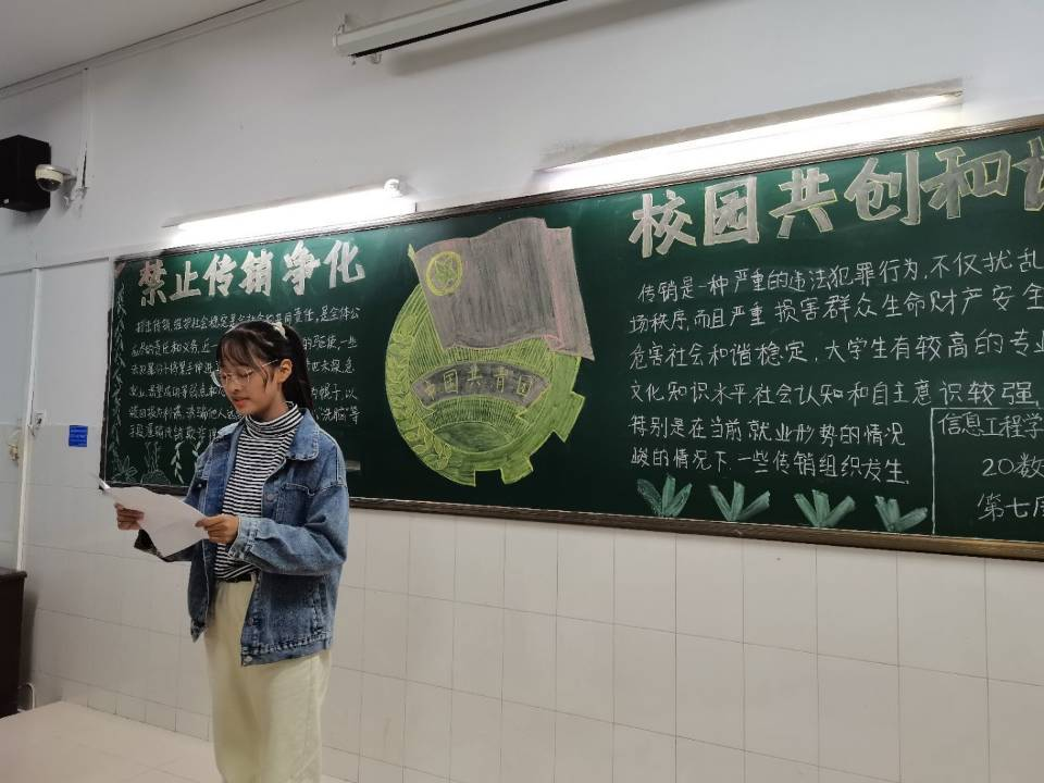 走进大学殿堂是广大学子十年寒窗的梦想,承载着父母亲友的期盼,远离传销组织的侵蚀是老员工的责任和使命。团课伊始,团支书向大家介绍了传销组织是不劳而获、采取不正当的手段、到处招摇撞骗的非法组织,并将典型案例如“经济邪教”、“流行性精神病毒”的传销案例给大家进行分享,要求大家警惕传销这颗“毒瘤”。团课上同学们纷纷表示身为老员工将坚决抵制传销,争做新青年。