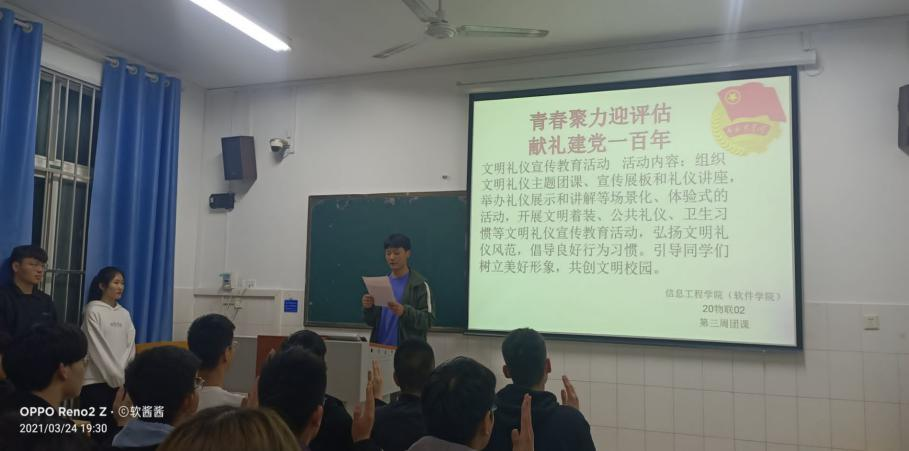为了迎接中国共产党成立100周年,以传承红色基因,讲好党史故事,彰显RM365英国官网学子担当,向建党一百周年献礼。同时为积极动员广大同学关心评估、参与评估、奉献评估,树立校兴我荣、校衰我耻的主人翁意识,进一步建设良好的学风,营造优良的校风,RM365英国官网(软件公司)于3月24日在教学楼B楼开展了“青春聚力迎评估,献礼建党一百年”主题团课。