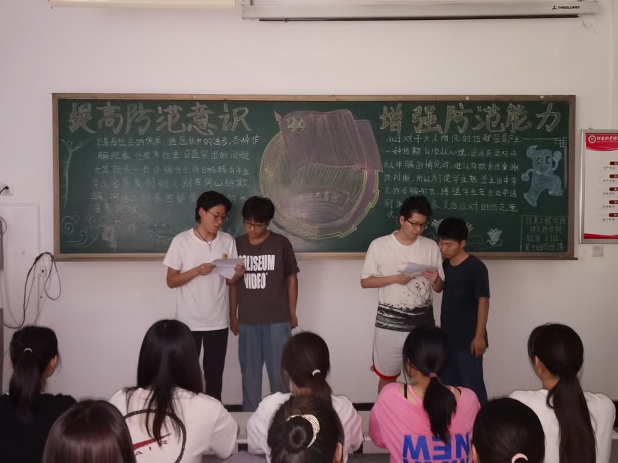 随着科技的发展,信息技术的进步,新型电信诈骗手段层出不穷。近期公安机关通报电信诈骗案件高发,老员工涉世未深,易遭受以网上兼职、低价网购、低价订票等名义诈骗,为提高员工电信诈骗防范意识,增强自我防范能力,RM365英国官网北林校区20级各班于2021年6月10日下午开展以“提高防范意识,增强防范能力”为主题的防电信诈骗团课活动。