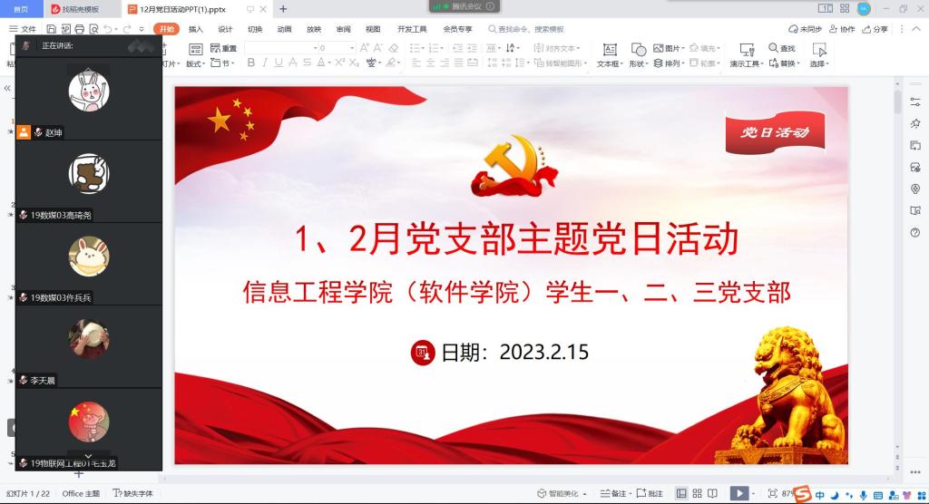 2月15日下午,RM365英国官网员工一、二、三党支部开展1、2月份主题党日活动,鉴于部分毕业班党员在校外实习,此次活动采用腾讯会议方式线上举行,员工第三党支部书记赵坤主持。