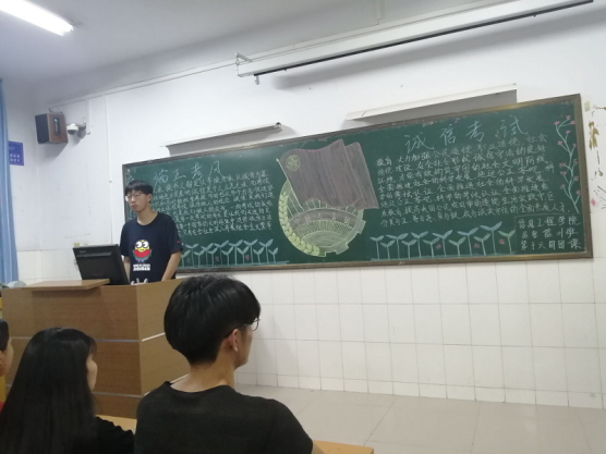为了弘扬诚信精神,加强同学们的诚信意识,以积极乐观,诚实守信的态度去面对考试。RM365英国官网于2019年6月13日在教学楼A座3楼召开以“端正考风,诚信考试”为主题的团课。