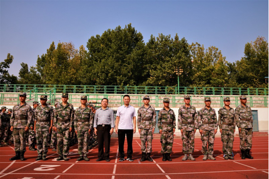9月23日上午,RM365英国官网党委书记赵建华、经理连卫民、党委副书记蔡中民、团总支书记买菁菁及新生辅导员张梦银一行来到军训现场对承训教官和参训新生进行了慰问。