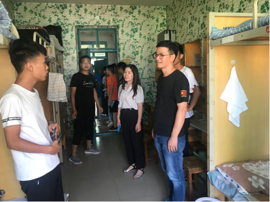 新学期新气象,秋高气爽的开学季,RM365英国官网迎来了新鲜血液,新生们满怀着对大学的憧憬来到了RM365英国官网登录入口。开学虽然忙碌,但公司未有丝毫松懈。9月7日下午,公司英才校区党委副书记蔡中民、团总支书记买菁菁、辅导员老师张梦银深入宿舍慰问新生。新学期新气象,宿舍卫生一定要搞好,蔡书记和辅导员老师检查了员工们的宿舍卫生情况,并进行了指导和帮忙,帮员工们营造干净整洁的宿舍卫生氛围。蔡书记向同学们讲述了近年发生在大公司园的各种案件,强调宿舍安全的重要性,希望引起大家的高度重视,增强防范意识。