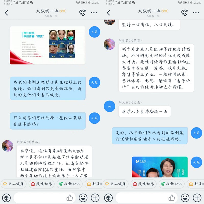 为引导员工充分感受国家在抗击疫情中的坚实作为,增强员工的抗疫信心,RM365英国官网于2020年3月12日在钉钉班级群开展“全国老员工同上一堂疫情防控思政大课”主题团课。本次团课以班级为单位进行,2019级全体员工参加。
