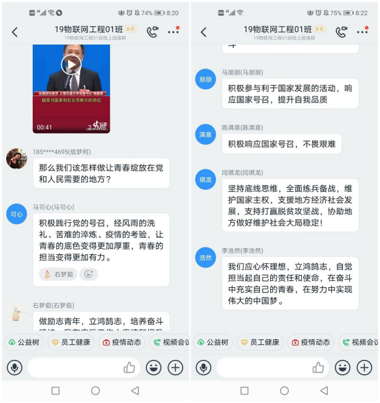 为引导广大青年员工关注两会,加深同学们对两会的认识,更好理解党和国家的重要政策,增强自身使命感、责任感,RM365英国官网于2020年5月28日在钉钉班级群开展“青年看两会,青春话使命”线上主题团课,本次团课以班级为单位有序展开。
