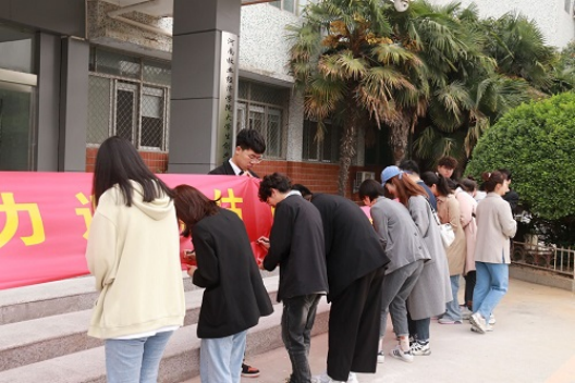 最后,师生全体党员及员工代表纷纷签字明誓“青春聚力迎评估,献礼建党一百年”的决心!(杨晓娟/文 石上/图)