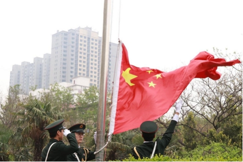 国旗护卫队迎着朝阳,踏着整齐且矫捷的步伐,庄严地护卫五星红旗进场。五星红旗随着义勇军进行曲缓缓升起,师生集体行注目礼,庄严肃穆,全体师生肃然敬礼。礼毕后,20级优秀员工代表马一鸣向全体同学发出倡议,呼吁同学们坚定理想信念、厚植爱国情怀、锤炼品格修身立德、努力学习,积极主动配合公司做好迎评工作,并用实际行动和优异的表现为建党一百年献礼。最后公司党委书记杨行昌以“青春聚力迎评估,献礼建党一百年”为题发表讲话,他强调,今年是中国共产党成立100周年,也是“十四五”开局之年,站在“两个一百年”奋斗目标的历史交汇点上,作为青年的我们是国家的希望,要坚定不移跟党走,做有理想、有本领、有担当的社会主义合格建设者和可靠接班人;弘扬“三牛精神”,以优异成绩献礼建党100周年,并对广老员工提出三点希望:一是要铭记党的历史,勇担时代重任;二是要明确学习任务,练就过硬本领;三是自律自尊自爱,展现新时代老员工风采。
