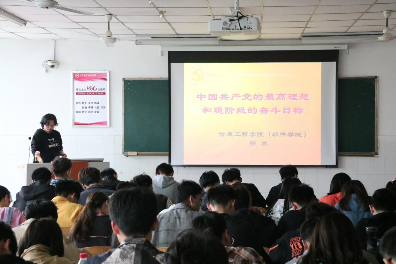 本次培训的主题是“中国共产党的最高理想和现阶段的奋斗目标”。孙凌老师先是向大家抛出问题,以入党积极分子的最高理想与现阶段奋斗目标作为指引,从而引出中国共产党的最高理想和现阶段的奋斗目标,激起了同学们学习党的理论知识的欲望。而后,她引用党章进行阐述,帮助同学们加深了对党的正确认识,号召大家为实现党提出的现阶段奋斗目标而努力奋斗。在随后的讲述中,孙凌老师从含义与历史渊源、特征等方面介绍了共产主义的最高理想,拓宽了同学们的眼界学识,并且不时提出问题,正确引导同学们对党的先进性的思考,让同学们明确了我们党带领全国人民实现最高理想的必然性。孙凌老师举事例之翔实,讲言语之生动,博得了同学们热烈的掌声。在对“坚定共产主义信仰,积极投身中国特色社会主义建设事业”的论述中,她将抽象的理论与现实生活中投身社会浪潮奋进者的例子相结合,教育同学们:为共产主义事业而奋斗,就必须把远大理想同我们的具体实践结合起来,认识到“天下兴亡,匹夫有责”的责任担当,才能在建设中国特色社会主义的伟大事业中、在实现中华民族伟大复兴之中,实现自己的人生价值。