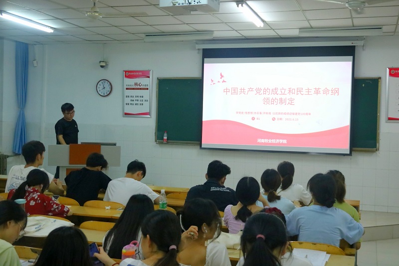 会上,赵坤老师再次明确了读书班的学习内容、学习安排、组织形式等内容,对组织好、开展好读书班工作进行了强调,然后组织同学们开展集中学习中国共产党的成立和民主革命纲领的制定。首先由A1小组成员代表带领大家观看了视频“觉醒年代”片段,在场师生无不受益匪浅,感触颇深。随后该同学也与大家分享了自己的心得感悟:认真学习党史,是适应时代发展的现实需要,是建设中国特色社会主义现代化建设事业的需要。世界在变化,形势在发展,中国特色社会主义实践在深入,置身国际国内形势深刻变化的今天,党的自身建设任务比过去任何时候都更为繁重。作为老员工的我们更应该力争上游,发展自我。随后由B1小组成员代表通过PPT展示,详细的地向同学们解释了中国共产党的成立以及民主革命纲领确立制定的过程,红色精神永存,在场师生认真听讲,现场学习氛围十分浓厚。