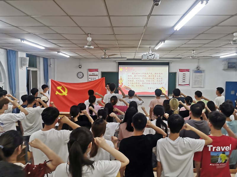 活动中,员工党员们满怀神圣而又庄重的心理重温了入党誓词,员工党支部书记带领员工党员举起右手,面向党旗庄严宣誓,重温入党誓词,回顾入党宣誓时的庄严承诺和坚定决心,带领同学们再一次接受了心灵上的洗礼和深刻的党性教育。他们高亢有力的宣誓声抒发了对党的深厚感情,感受到作为一名党员的责任与担当,表达了员工党员们永远听党话、感党恩、跟党走的坚定意志。