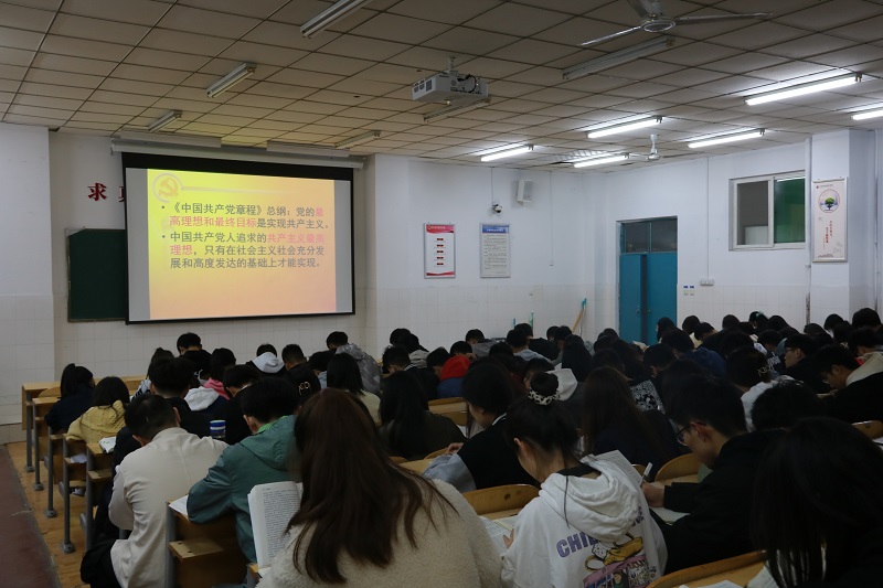 党课伊始,孙凌老师首先带领大家学习了《中国共产党章程》总纲,以诙谐生动的语言让同学们更好地理解党的最高理想和现阶段的奋斗目标、党的最高纲领和最低纲领之间的关系。随后,孙凌老师举例了从中西方、战国时期、近代到改革开放以来的一系列事例,详细地为大家讲解了人类的崇高理想,在之前讲解的基础上再深入,便于大家领悟。最后,孙凌老师结合自身实际极大地表现出对共产主义社会的期待和向往。并教育同学们为共产主义事业而奋斗,认识到“天下兴亡,匹夫有责”的责任担当,并在建设中国特色社会主义的伟大事业中实现自己的人生价值。