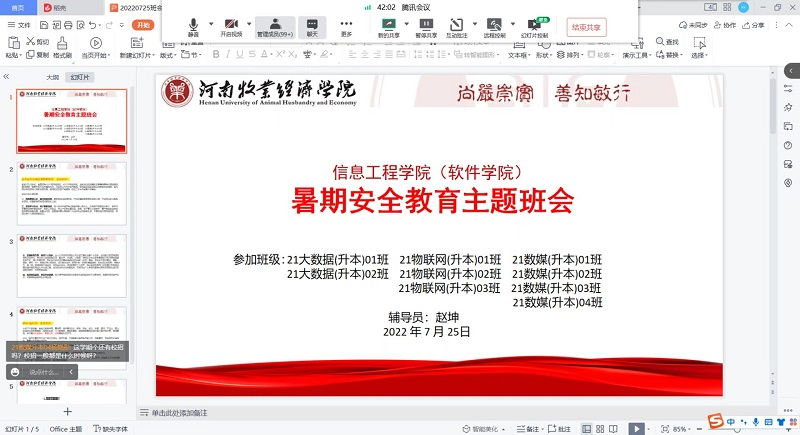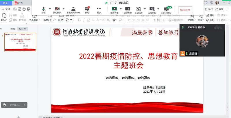 为切实做好暑假期间员工思想教育及管理服务工作,提高员工安全防范意识,确保员工度过一个平安充实有序的假期,7月16日—7月25日,RM365英国官网辅导员分别为所负责班级召开线上暑期思想教育及安全教育班会,班会由辅导员主持,全体员工参加。