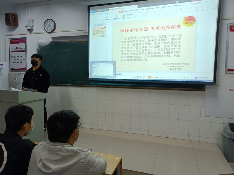 在团课期间,各班团支书积极引导员工们尊崇英烈、学习英烈、守护英烈,紧紧抓住交接、迎归、安葬三环节,从历史背景、战争性质、烈士功绩、现实意义等方面进行团课发言。紧接着由员工代表通过PPT的方式,为同学们传达爱国主义、国际主义和革命英雄主义等红色精神,与同学们积极互动,使本次团课活动生动扎实、富有成效。最后员工代表呼吁同学们将革命烈士的伟大爱国精神发扬光大,不仅从历史的的角度激发同学们的爱国热情,还结合时代的发展,提出当代青年面对革命先烈应有的姿态和抱负。