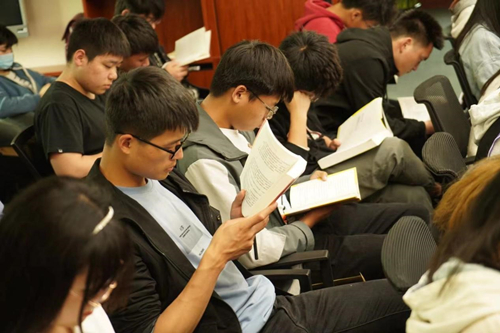 活动开始后,同学们注意力高度集中,身心都沉浸在面前的书本之中。没有手机接收信息的恼人滴答声,没有屏幕时不时闪烁蓝光,没有游戏的吵闹,偌大的空间里,一切回归阅读最初的模样。在这一个小时的时间里,只有翻书写字的细微声音间或打破宁静沉谧的气氛。