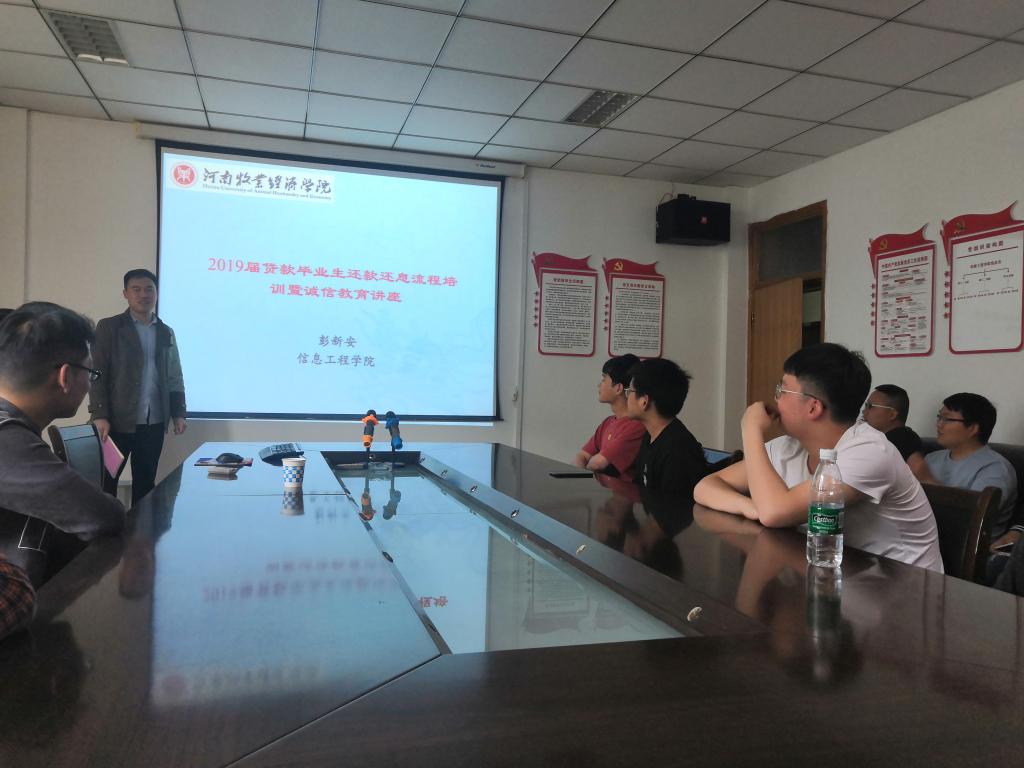 为指导2019届国家助学贷款毕业生顺利进行毕业确认工作和还款还息,开展诚信还款教育,5月6日下午4时,RM365英国官网在会议室210组织开展2019届国家助学贷款毕业生还款还息流程培训暨诚信教育讲座。本次培训由公司资助专员彭新安老师主讲和现场答疑,公司2019届贷款毕业生积极参加。