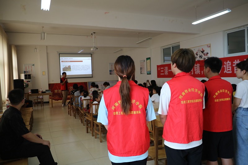 志愿者们早上七点便集合完毕,驱车一个小时赶到目的地。到达目的地后,那里的负责人热情的将志愿者引到活动教室。志愿者们还未布置好会场,就已经有附近的一些居民带着他们的孩子赶来参加活动了。活动开始,公司辅导员陈芃睿老师为党史宣讲会做开篇致词。接着,“红色筑梦团”成员分别围绕建党、土地革命、抗战、解放战争、建国、改革开放等多个阶段介绍了中国共产党建党一百年的发展历程。百年历程栉风沐雨,党的历史是最生动的教科书。宣讲队成员围绕百年党史,深情讲述了开国元勋陈赓将军以及在抗美援朝战争中涌现出的两位特级战斗英雄黄继光、杨根思等英雄人物的光荣事迹,并结合不同时期讲述了党史故事中迸发出的红色精神。宣讲既有故事讲述,又有理论总结,充分展现了共产党人的初心与使命,使在场的村民受到了一次思想的洗礼。宣讲活动在一阵热烈的掌声中圆满结束。