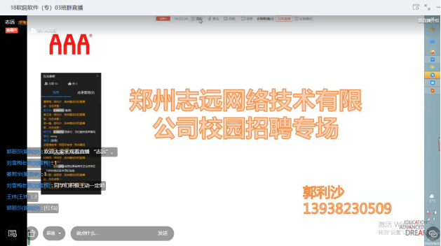 为有效的落实毕业生就业服务工作,在院领导的大力支持下,郑州志远网络有限公司面向公司龙子湖校区毕业生,通过钉钉直播进行了网络专场宣讲会。